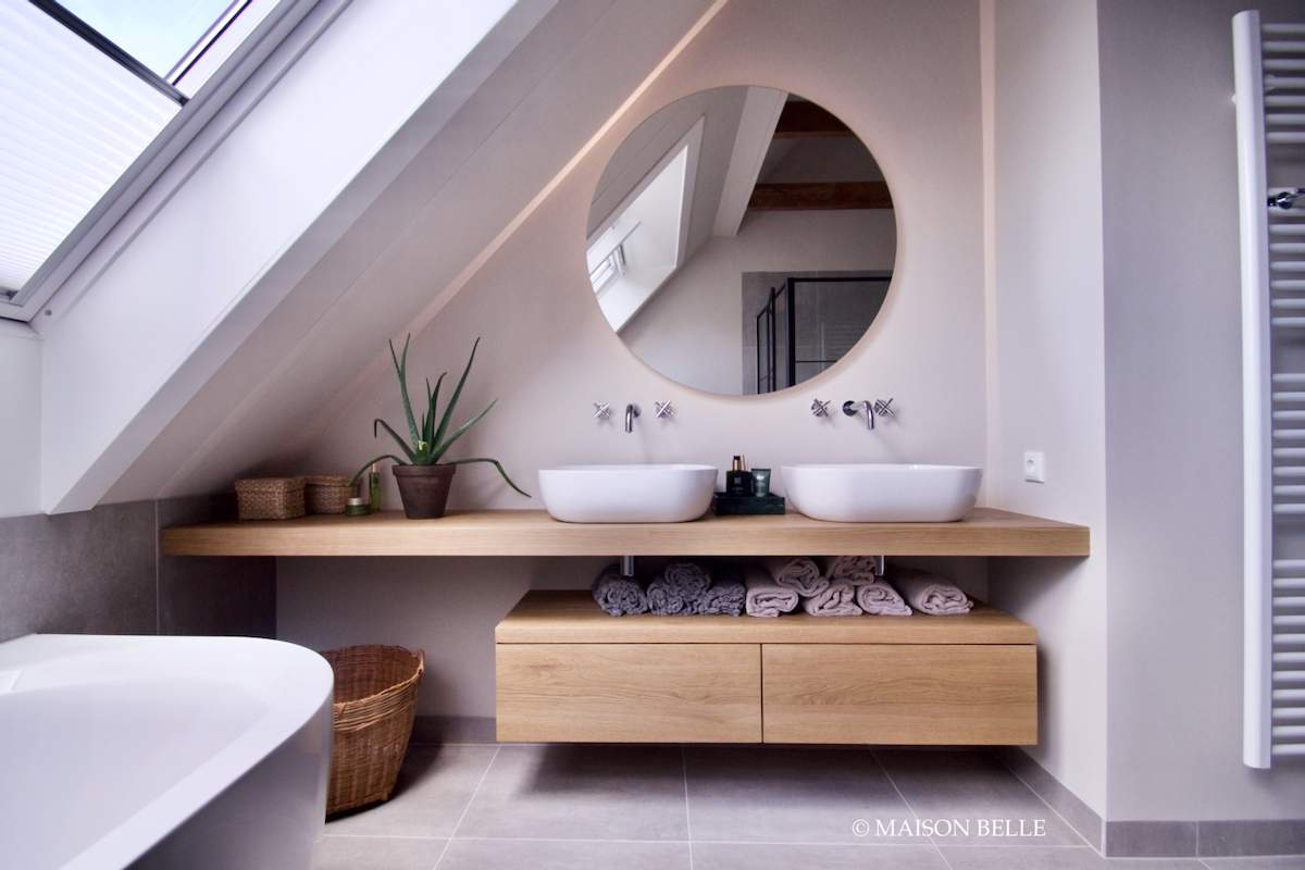 Toen ik in september op de VT Wonen en designbeurs was, viel mijn oog op de badkamer stand van het merk: Looox. Ik raakte aan de praat met de medewerkers die enthousiast vertelden dat deze badkamer meubels ook onder de schuine kap op maat kunnen worden gemaakt. Het massief eiken hout en design sprak mij enorm aan en is door de afwerking heel geschikt voor de badkamer. De waskommen van Looox zijn in verschillende maten ontwikkeld zodat ik met twee grote waskommen weinig gespetterd heb op het houten blad.