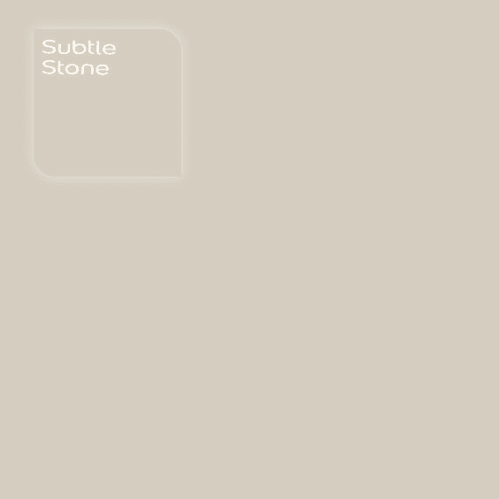 Omdat onze zithoek op het noord-oosten ligt is deze hoek best donker en het licht koel. Daarom kies ik hier voor lichte wanden in een warmte tint. Na een aantal A4 stalen thuis bekeken te hebben, koos ik voor: Subtle Stone. Een neutrale tint die op de foto's misschien niet heel goed te duiden is. Je ziet hem goed op deze kleurstaal. Deze verf is mat en afneembaar waardoor het lange tijd mooi blijft. Na een Zaterdag schilderen (we deden de andere muren van de woonkamer ook maar even) zijn de wanden weer als nieuw. We schilderden de schilderij plank ook met de muurverf, hierdoor valt deze mooi weg.