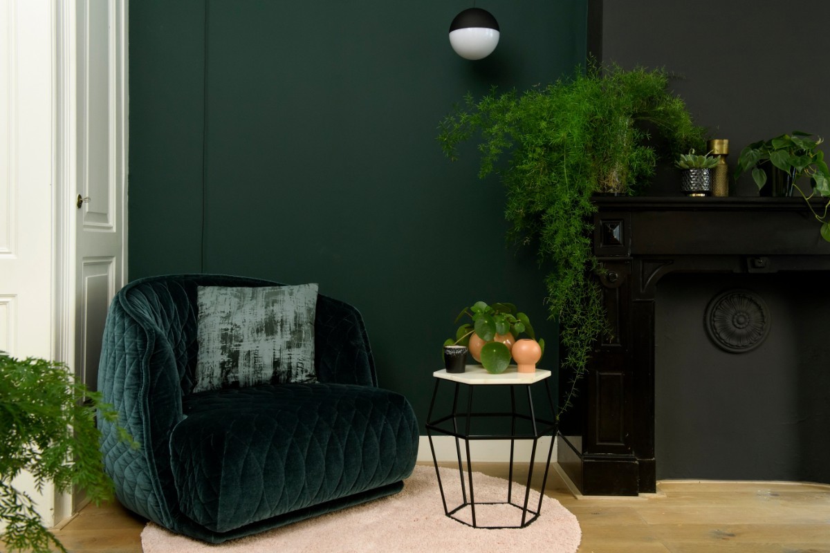 De kleur groen is helemaal terug van weggeweest. Sinds een paar jaar zien we steeds meer groen in fashion en in de interieurs. Kamerplanten zijn niet aan te slepen, zacht groene muren mogen nu zelfs donker groen worden en zelfs de meubel collecties halen groene stoffen in hun standaard assortiment. Omdat het zo'n succes is: let's go green!