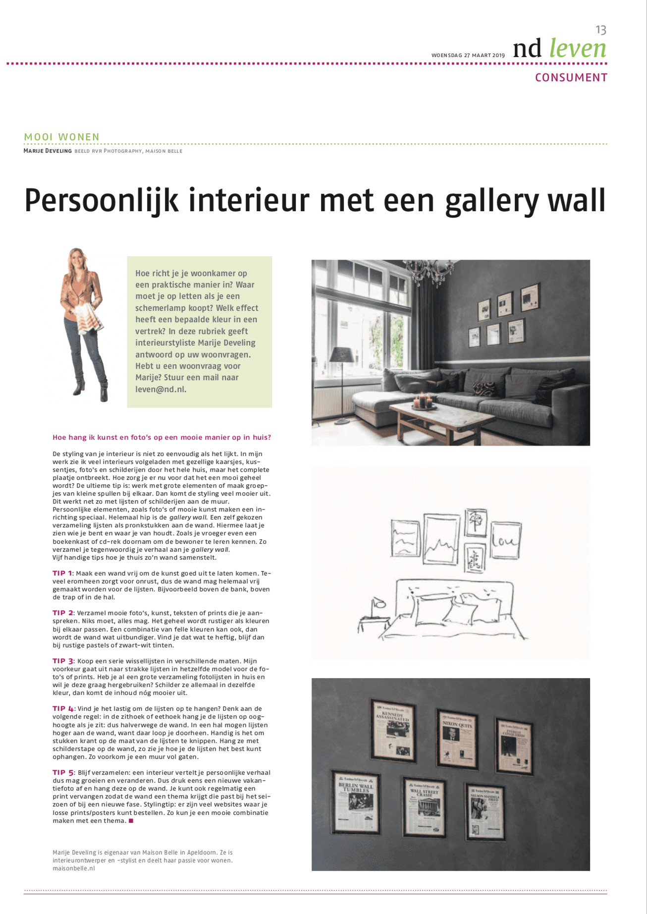 Ik wens je veel plezier bij het creëren van je nieuwe kunstwand! Wil je verder lezen? Veel interieur inspiratie vind je in de woonblog. Deze column is speciaal geschreven voor het ND leven maart 2019.