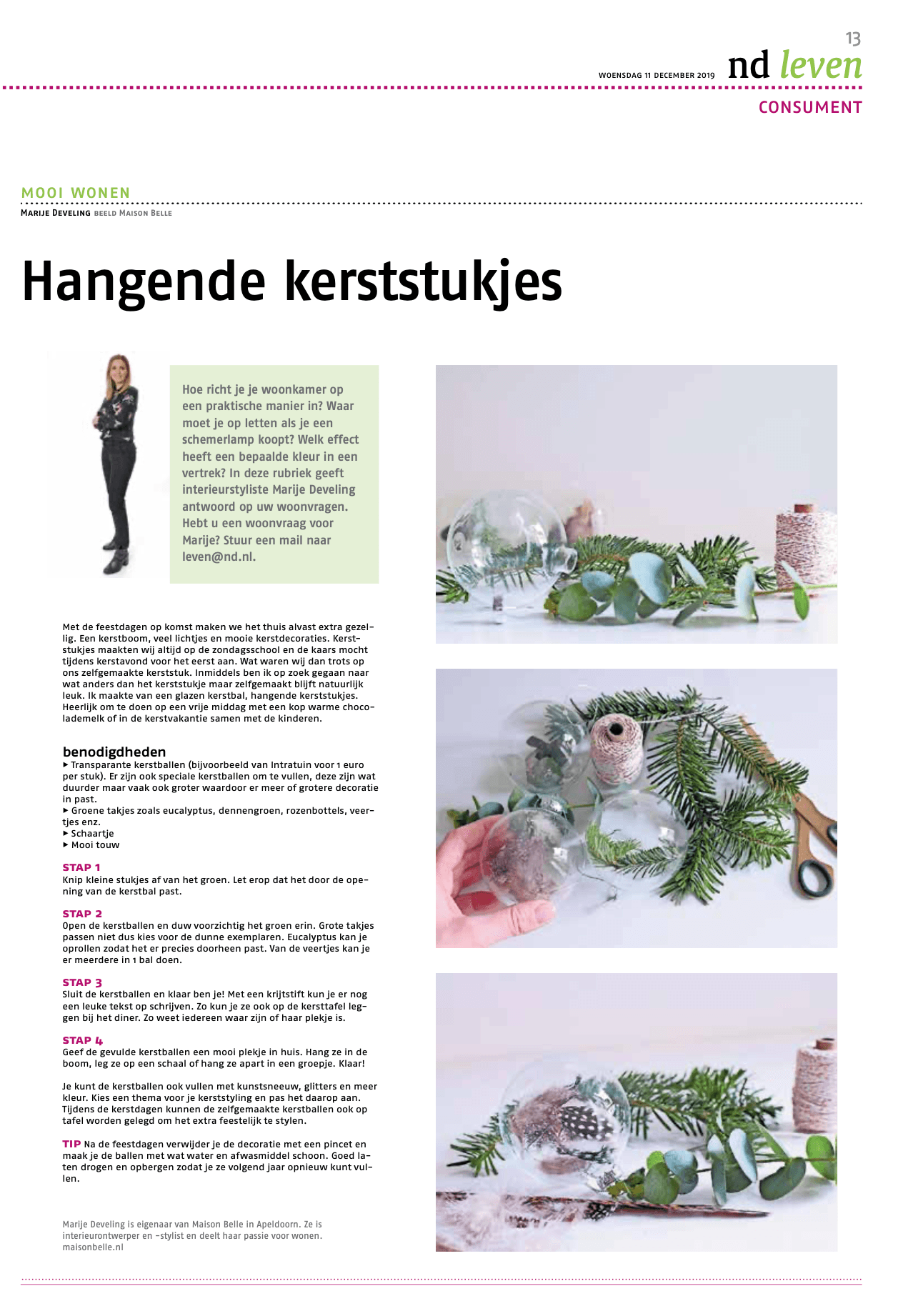 Tip: Je kunt de kerstballen en krans ook vullen of versieren met kunstsneeuw, glitters en meer kleur. Kies een thema voor je kerststyling en pas het daar op aan. Tijdens de kerstdagen kunnen de zelfgemaakte kerstballen en kransen ook op tafel worden gelegd om het extra feestelijk te stylen tijdens het kerstdiner. Meer leuke kerst ideeen en inspiratie vind je in de blog.