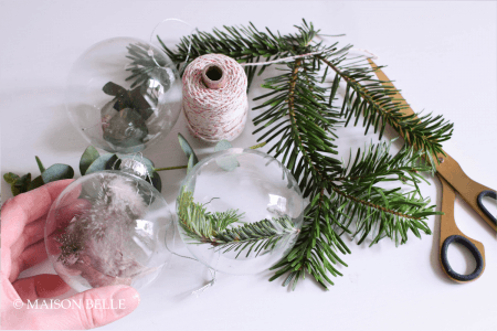 In deze blog laat ik stap voor stap zien hoe je zelf deze transparante kerstballen vult met natuurlijke materialen. Leuk nu de botanische interieur-trend zo doorzet, je kunt ze ook vullen met een stukje groen van je kamerplanten. Een kamer-den is hiervoor heel erg geschikt omdat deze plant hele fijn dennentakjes heeft.