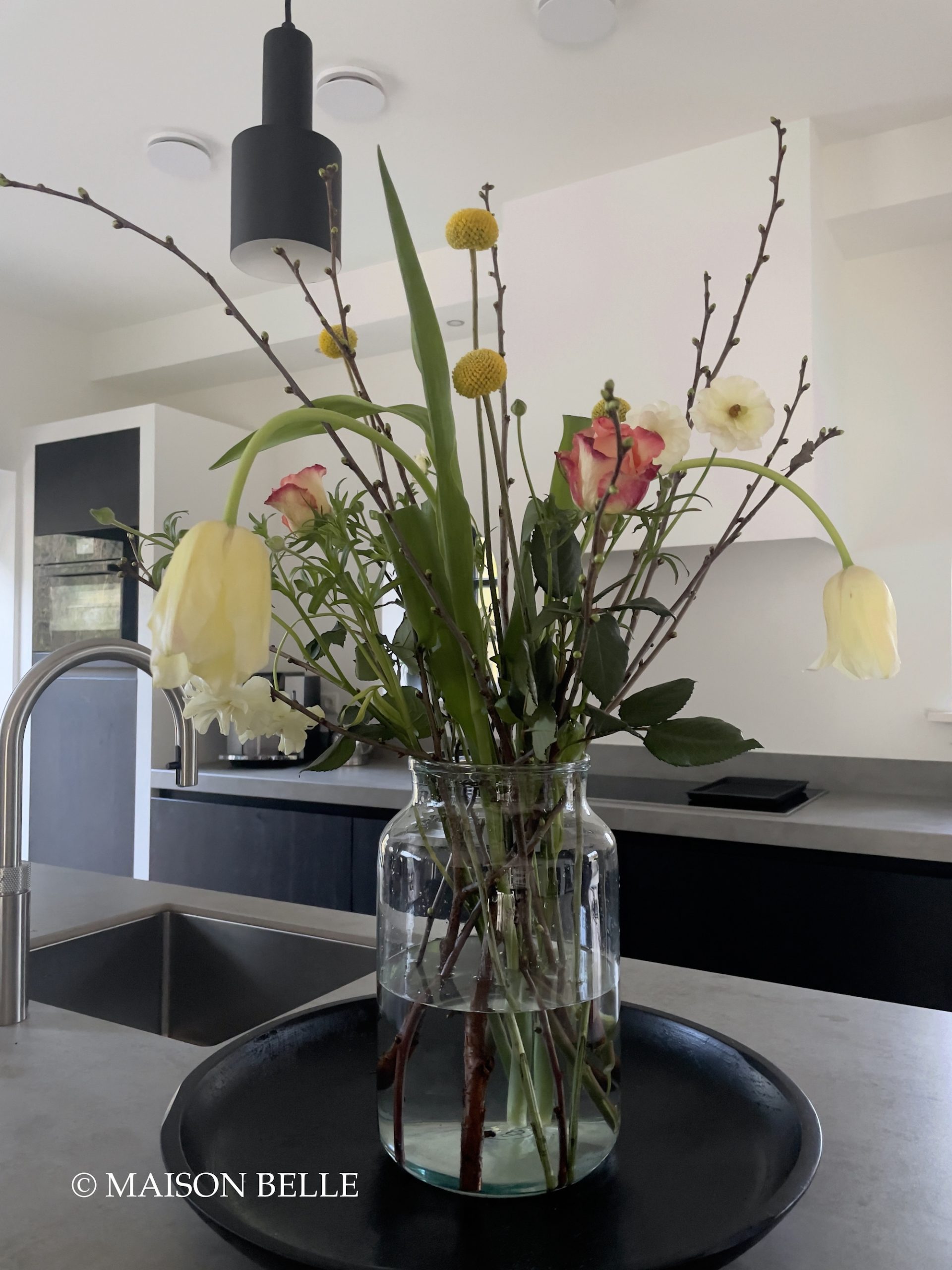Ik ben geen winter mens dus tel na de feestdagen de weken af tot het voorjaar begint... Dit zijn de maanden dat ik verlang naar de zon, bloesem en voorjaars bloemen. Ik ben gek op bloemen; daarom haal ik juist nu extra bloemen in huis. Een standaard boeket, daar hou ik niet van. Het liefst ga ik zelf aan de slag en kies bloemen van het seizoen waar ik zelf een mooie bos van maak.
