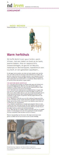'Herfst: guur buiten, warm binnen, met een deken en boek op de bank, warme sokken, thee en cappuccino's, boswandelingen, de geuren en de kleuren, kastanjes en dennenappels, kaarslicht en vuurkorf en vers gebakken appeltaart...' Nu de dagen korter worden verruilen we buiten steeds meer voor binnen en is het zo fijn om het binnen weer lekker knus te maken. We genieten nog volop van een heerlijke nazomer maar langzaam zie je de natuur al verkleuren. Kastanjes liggen voor het oprapen en het groene blad maakt plaats voor warme bruin- en roodtinten. Mooie kleuren om je interieur alvast wat warmer en knusser te gaan maken.
