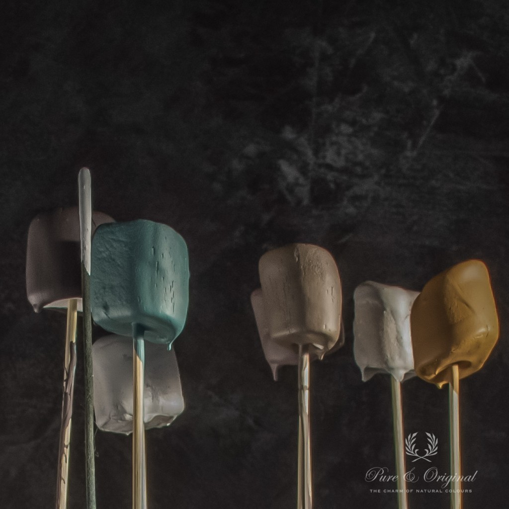De verven zijn gemaakt met respect voor mens en natuur. Door de natuurlijke pigmenten leven de kleuren mee met het moment van de dag. De zachte en poederachtige uitstraling doen de kleuren nog beter uit komen.