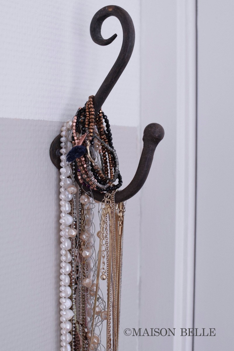 Een aantal sieraden hing ik op aan een oude haak. De meeste spullen die ik heb gebruikt vond ik op rommelmarkten. Leuk om te zien wat nieuwe combinaties en doorleefde woon accessoires kunnen doen!