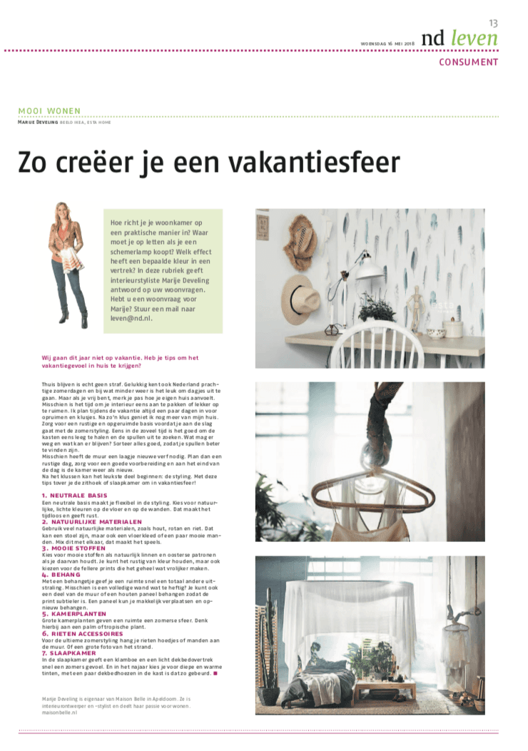 Geef je interieur het ultieme vakantie gevoel door een zomerse interieur styling. Met wat creativiteit tover je de zithoek of slaapkamer om in deze vakantie sfeer.